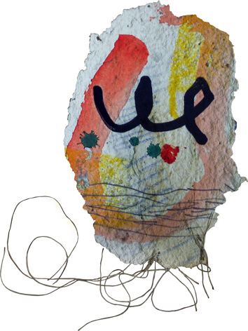 Tratada con suportes de pasta de papel fabricada por el autor, combinada con ilutraciones originales y estampada sobre papel Ingris de 100 gm