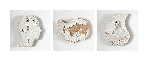 « Serie: Perfiles » 30 cm. x 30 cm. Tres piezas / Madrid 2012. Papel fabricado por el autor. Estampado sobre planchas de escayola .
