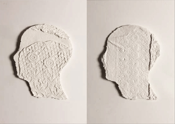 « Serie: Perfiles » 26,5 cm. x 37,5 cm. Madrid 2017. Papel fabricado por el autor. Estampado sobre planchas de escayola.