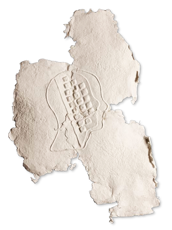« Tecleando » 60 cm. x 40 cm Madrid 2014. Papel fabricado por el autor. Estampado sobre planchas de escayola.