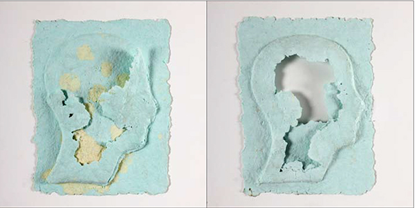 « Serie: Perfiles » 30 cm. x 30 cm Madrid 2012. Papel fabricado por el autor. Estampado sobre planchas de escayola.
