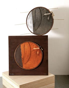 Aros de madera, papel BFK. Rives 300 gr.